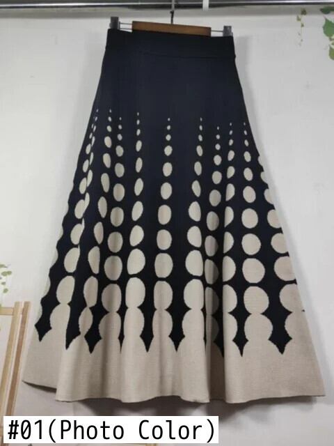 ランウェイ スタイル Tupfen gestrickt Rock mit hoher Taille Damen neue Herbst Winter Büro Dame elastische A-Linie Plissee Midi Rock ウィンター 冬物 | two