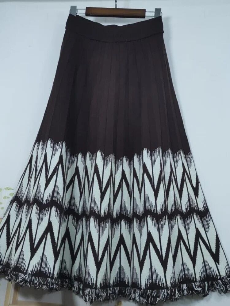 Geometrischer Quasten falten Rock für Damen Winter elastische hoch taillierte A-Linie Rock Strick Rock Runway Style Damen bekleidung ウィンター 冬物 | two