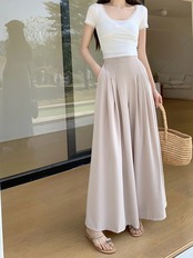 Smthma 2024 Lente Zomer Nieuwe anse Dames Vakantie Geplooide Broek Hoge Taille Wijde Pijpen Lange Broek ストリート | two