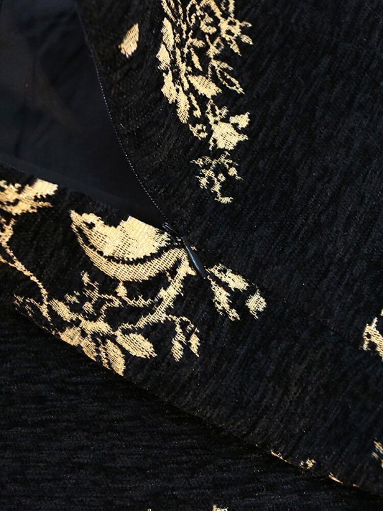 Smthma ゴールド ジャカード シェニール ベスティックテン Rock für Frauen Herbst Winter Split Quaste mittellangen A-Linie Rock ウィンター 冬物 | two
