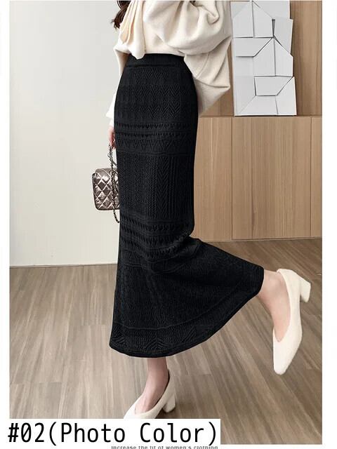 Smthma Nieuwe Mode Uitgeholde Mid Rok Nieuwe Herfst/Winter Lange Rok 2024 Afslankend Temperament One Step Rok ウィンター 冬物 | two