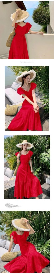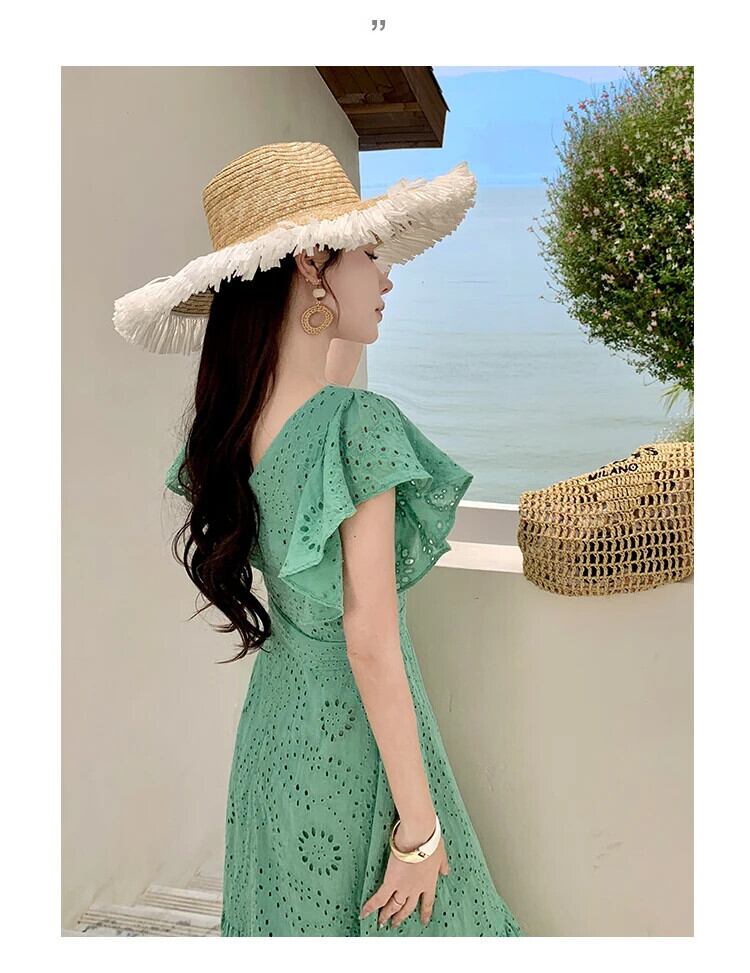Smthma Uitgehold Borduurwerk Bloem Zomerjurk Vrouwen セクシー V-Hals Vliegende Mouw Vakantie Lange Jurken | two