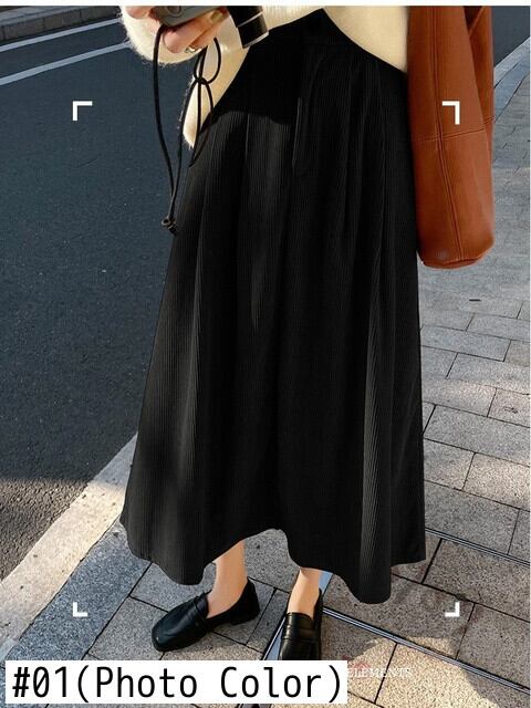 Smthma 2024 neuer Herbst Winter Cord Falten ロック für Frauen hohe Taille、schlanker mittlerer A-Linie langer Rock ウィンター 冬物 | two