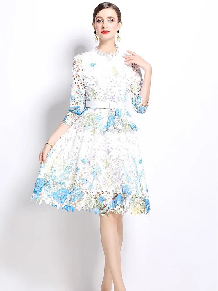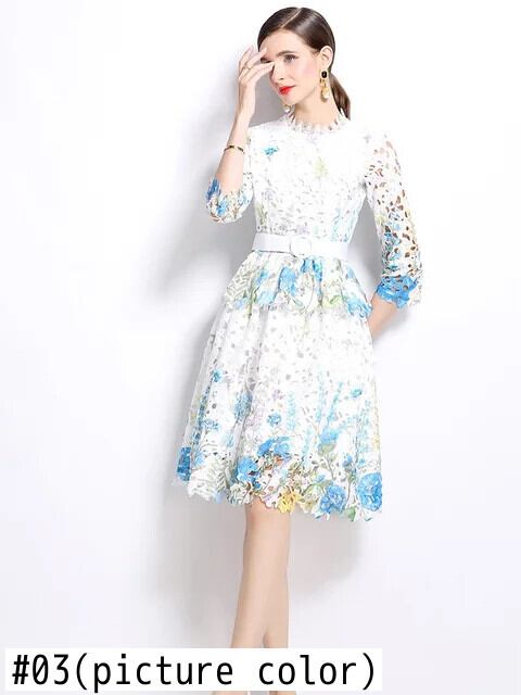 Smthma Kant Holle パッチワーク Geplooide キャットウォーク シック Jurk Voor Vrouwen O Hals Nieuwe Herfst Nieuwe Mode プリント Jurk Vrouwelijke Kleding | two