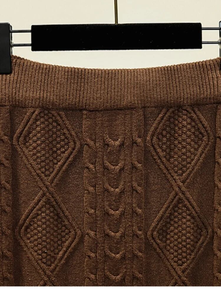 Smthma Nieuwe Mode Herfst Winter Warm Dik Gebreide Damesrokken Elastische Hoge Taille A-Lijn Vrouwelijke sexy Geometrische Patronen Rokken ウィンター 冬物 | two