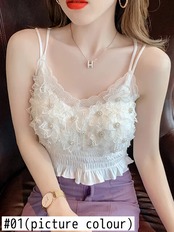Smthma 2024 Sommer Diamant Perlen 3d Blume Ernte トップス Frauen Schönheit zurück kurze V-Ausschnitt schlanke タンクトップ | two