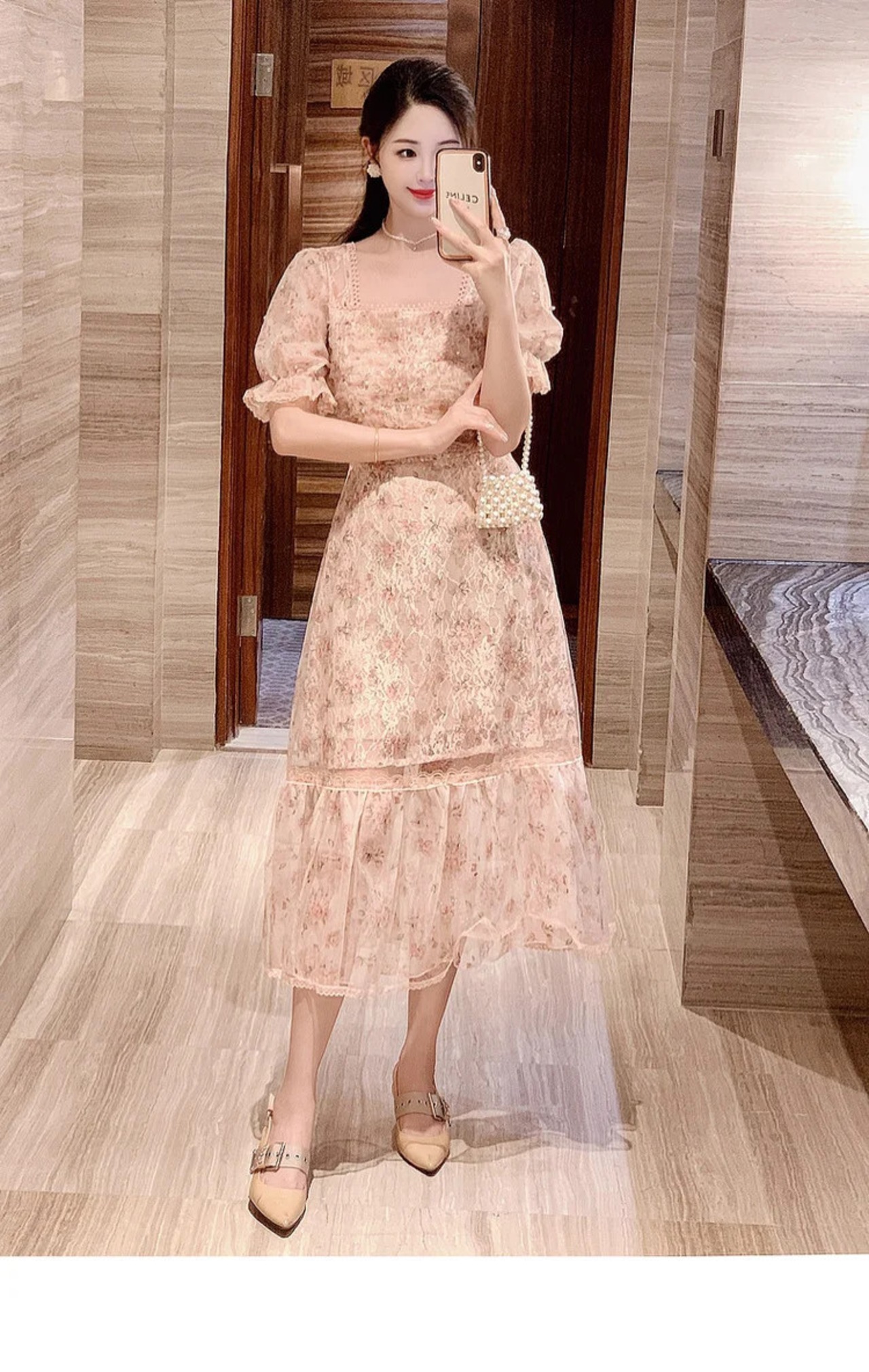 SMTHMA-ローブ ロング アミンシサント イン デンテルとマンシュ コート ファム、プティ プロデュイット フローラル、コル カレ、モード デテ、ヌーヴォー、2024 花柄 フェミニン | two