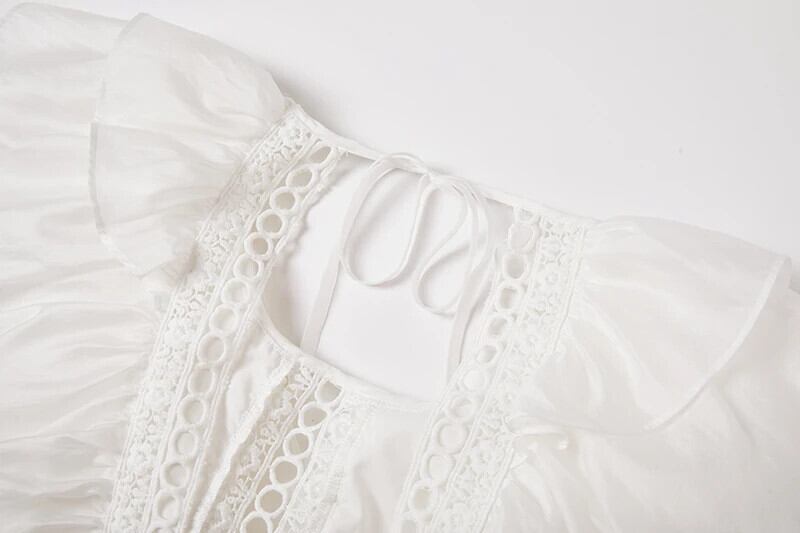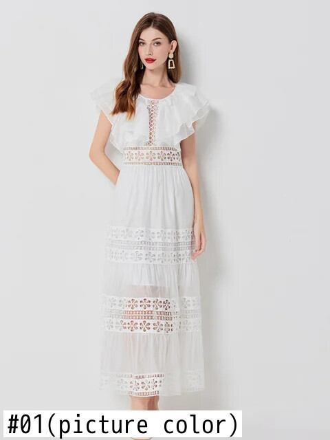 SMTHMA ハイエンド新製品 Baumwoll spitze aushöhlen Kleid Damen Rüschen große Schaukel パッチワーク weiße Landebahn lange Kleider | two